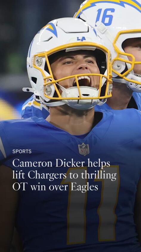Philadelphia was in prime position to forge another tie in overtime. The Eagles (8-5) answered Dicker’s fifth field goal by driving to the Chargers’ 41, the outer edge of kicker Jake Elliott’s range. They wanted to get a little closer, however, so the offense stayed on the field for a fourth and four.